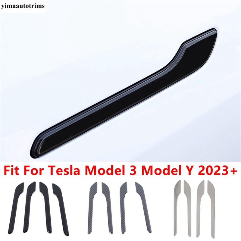 Car Outer Door Handle Decoration Cover Trim ABS Black / Stainless Steel Accessories Exterior For Tesla Model 3 Model Y 2024
