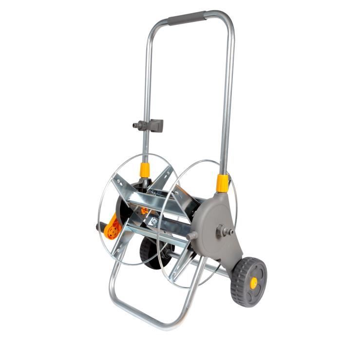 Hozelock dévidoir sur roues assemblé en métal de 60m, chariot sur roues, manuel, fonctionnel, gris, aluminium, pvc, autonome