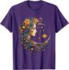 Mystic Celestial Woman Moon Flowers Graphic Print Cotton Crew Neck T-Shirt Unisex Casual Trip Wear