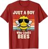 Just A Boy Who Loves Bees Cartoon Graphic Tee Men Casual Breathable Short Sleeve T-Shirt