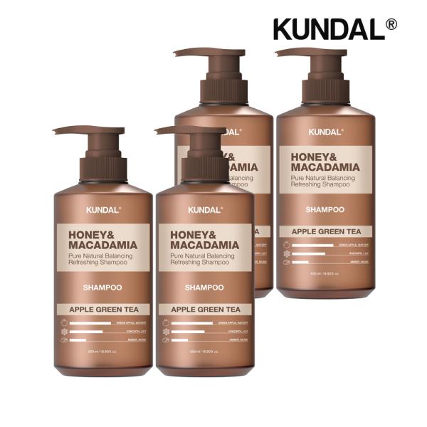 KUNDAL Honey & Macadamia Nature Shampoo Apple Green Tea 500ml X4