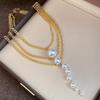 Fashion Chain Pearl Necklace For Women Baroque Pearl Metal Charm Pendant Necklaces Irregular Sweater Chain