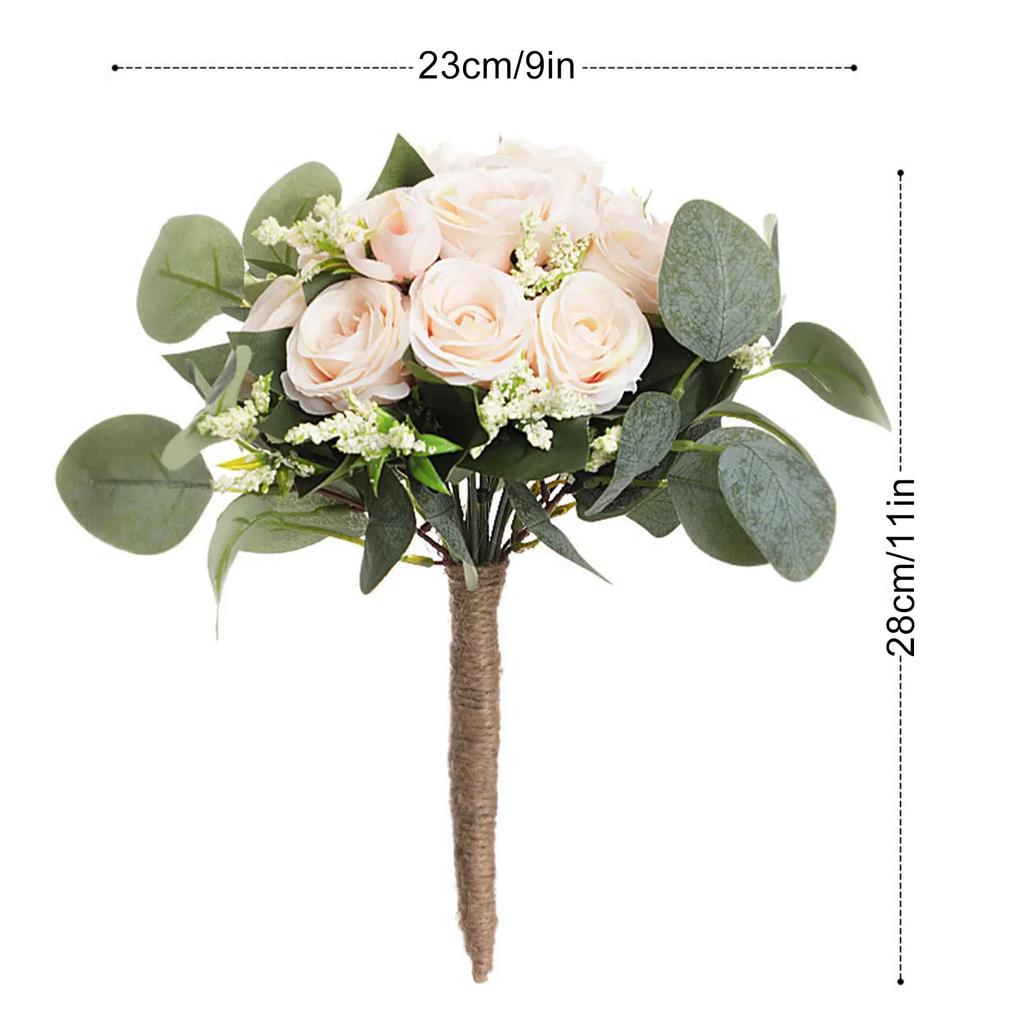 Handmade Silk Roses Bridal Bridesmaid Wedding Bouquet Pastoral Style Eucalyptus Leaves Artificial Natural Holding Flowers Party