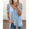 Summer Women's V-neck Zipper Hollow Short Sleeve Top Casual Women's T-shirt Plus Size Women's Short Sleeve