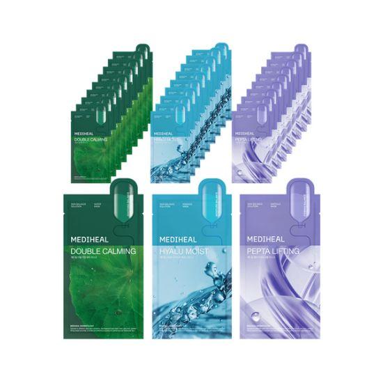 Mediheal Daily Solution 3 Types Hydrating Soothing Brightening Sheet Mask Set 30pcs