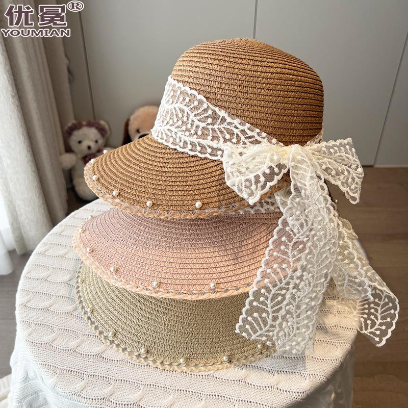 New Straw Hat Women's Big Eaves Seaside Sunshade Sunscreen Beach Hat Fashion Lace Bow Sun Hat