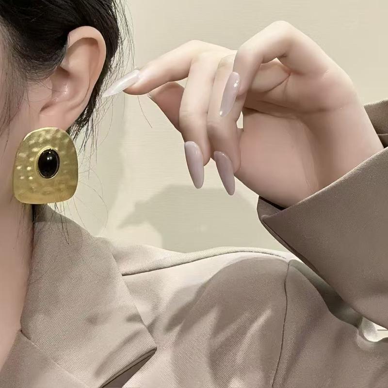 Vintage Alloy Black Stone Push Dangle Earrings For Women Jewelry Trendy Girls' Daily Statement Earrings Accessories