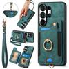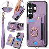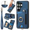 Ring Holder Cards Solt Leather Wallet Case For Samsung S25 Ultra S24 Plus S23 A16 A17 A07 Magnetic Kickstand Pocket Strap Cover