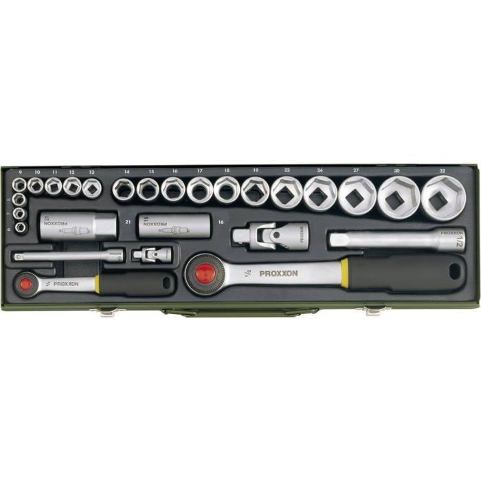 Proxxon Industrial Jeu de clés à douille métrique 1/4 (6.3 mm), 1/2 (12.5 mm) 27 pièces 23020