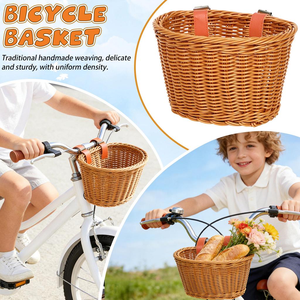 Bike Basket For Front Handlebar Kid Adult Handlebar Wicker Basket Bike Decoration With Leather Straps Accessories Basket