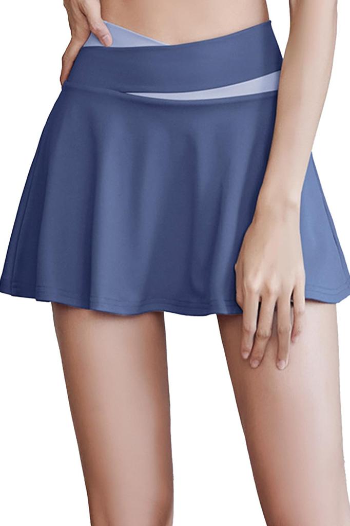 [Inner Pants] This high-waisted sports tennis skirt features a double layer: an outer skirt and inner shorts. Built-in safety shorts allow you to move freely without worrying about accidental exposure. Its high stretch and comfortable fit keep it in place during exercise. It provides comfortable, natural coverage even when bending and stretching.