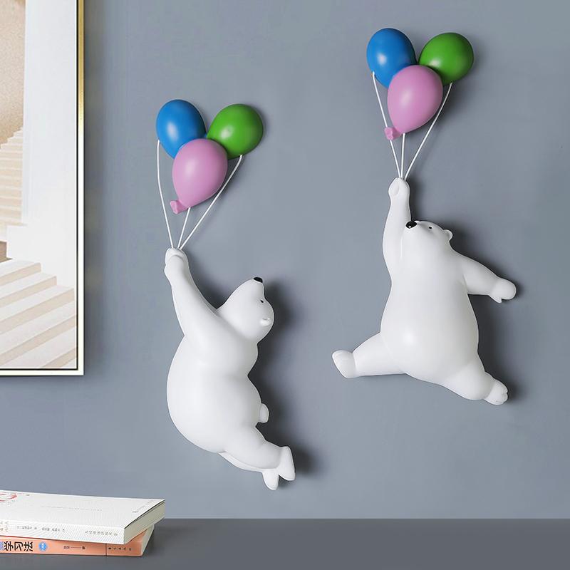 Resin Bear Animal Sculpture Nordic Creative Wall Balloon Wall Decor Pendant Living Room Children's Room Bedroom Wall Decorations