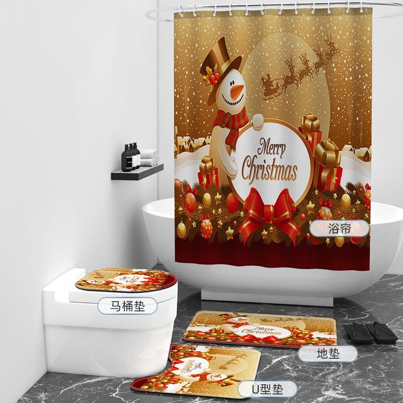 Bathroom 4-Piece Christmas Digital Printing Bathroom Non-Slip Mat U-Mat And Shower Curtain Set