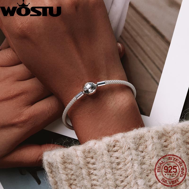 WOSTU 100% 925 Silver Original Bracelets Snowflake Blue Eyes Zircon Chain Fit Women Bracelet & Bangle Luxury Jewelry