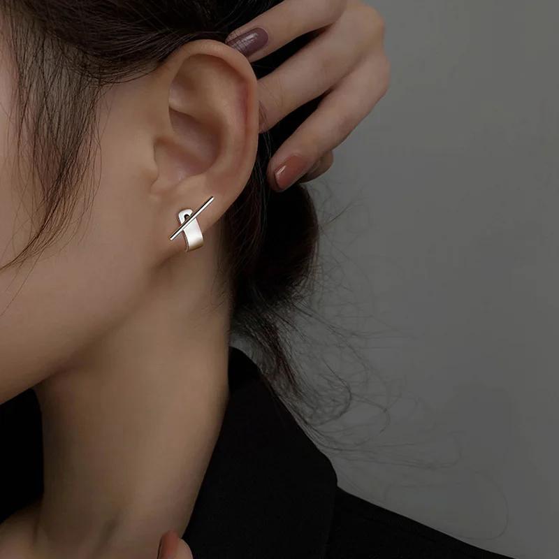 925 Silver Geometry Studs Earring for Women Splicing Korean Hip Hop Versatile Jewelry Gift