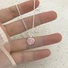 925 Silver Pink Cat Eye Stone Love Necklace For Women Sweet And Cute Heart-Shaped Collarbone Chain Wedding Jewelry