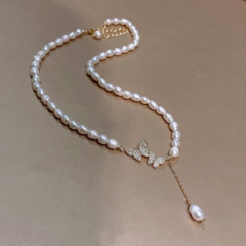 Retro Light Luxury Pearl Necklace Niche High-end Butterfly Pendant Necklace Jewelry Women's Elegant Versatile Collarbone Chain