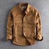 Fashion Solid Color Cotton Wash Long Sleeved Shirt Men's Double Pockets Retro Casual Youth Jacket Thin Coat