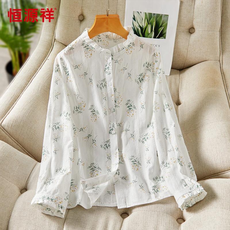 Hengyuanxiang Women's Floral Print Cotton Long Sleeve Shirt