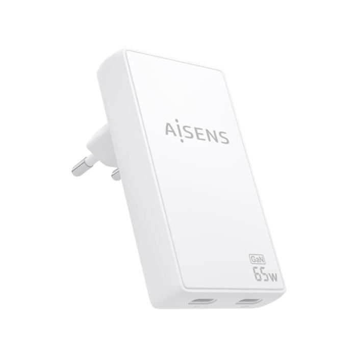 GaN Wall Charger Aisens ASCH-65W2P077-W- 2xUSB Type-C- 65W- White