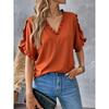 Summer Casual Short Sleeve Shirt Women V Neck Ruffle Design Loose Tee Tops Solid Elegant Women T-Shirts