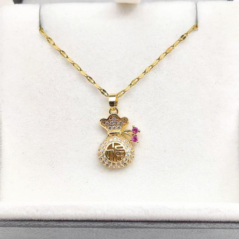 1 Pcs Fine Lucky Bag Copper Pendant with Zircon Necklace Steel Clavicle Chain Women's Girls' Elegant Accessories