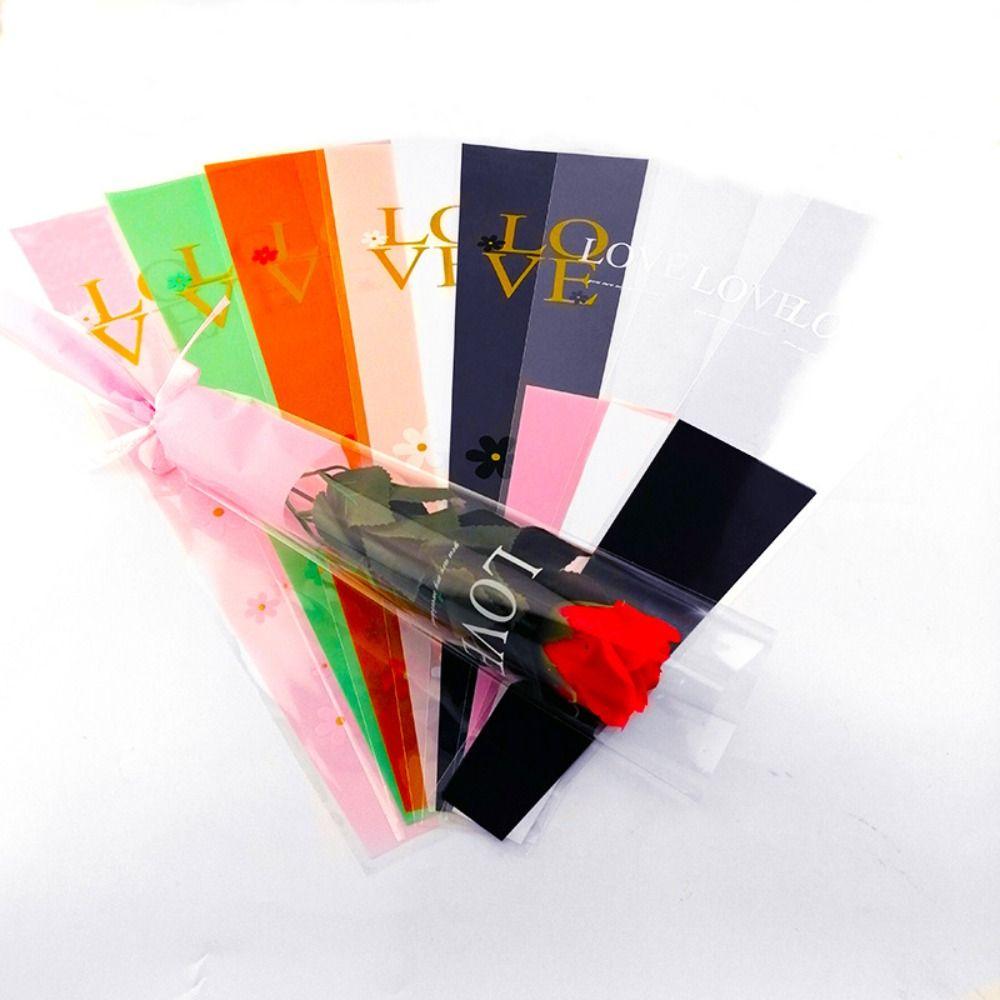 50Pcs Single Flower Flower Wrapping Bag Love Single Rose Sleeves New Bouquet Wrapper Party Supplies