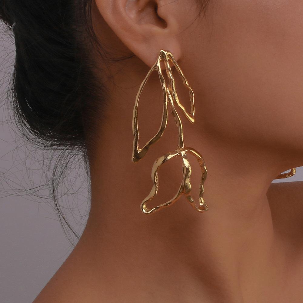 Cross Border Exaggerated 3D Geometric Earrings Heavy Metal Style Flower Design Runway Party Fashion Ear Jewelry