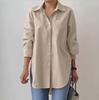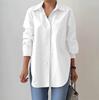 Spring Elegant Blouse Stylish Women Lapel Neck Long Sleeve Shirt Loose Solid Split Hem Tops Oversize OL Work Blusas