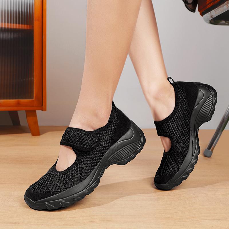 Platform Shoes Women's Summer Breathable Mesh Slip-On Shoes Lightweight Comfortable Walking Shoes Elderly Footwear Flat Heel