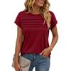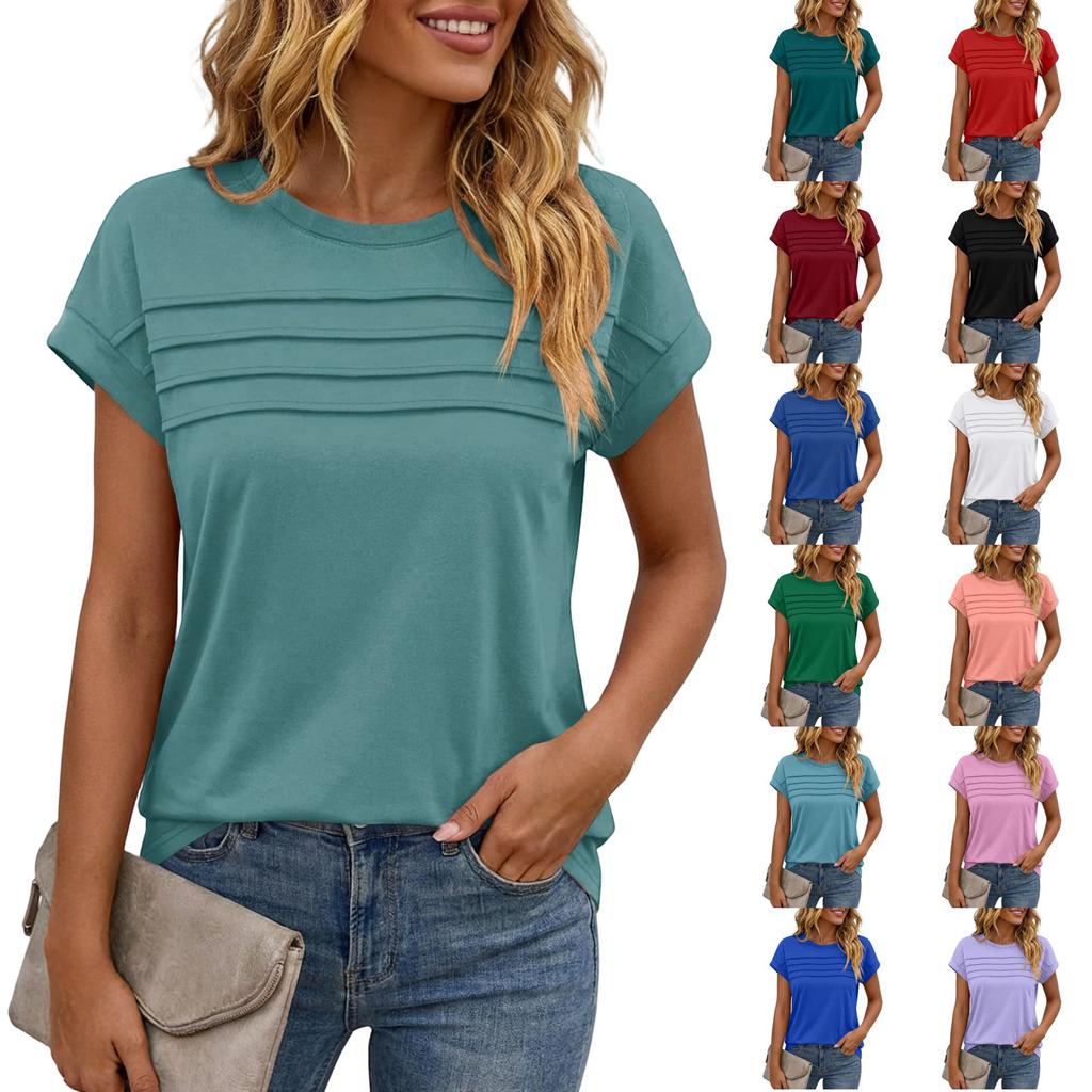 Women's Casual Top Monochrome Pleated Top Round Neck Short Sleeved Shirt