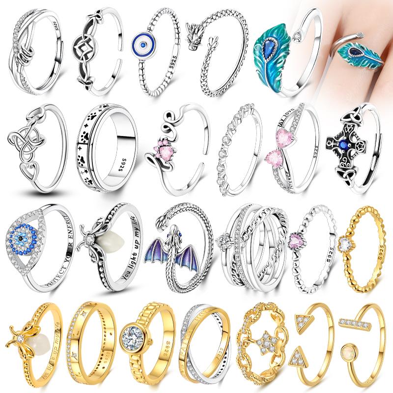 Rings 925 Silver Dragon Star Moon Blue Eyes Firefly Rings For Women Man Wedding Engagement Part Fashion Jewelry Gift
