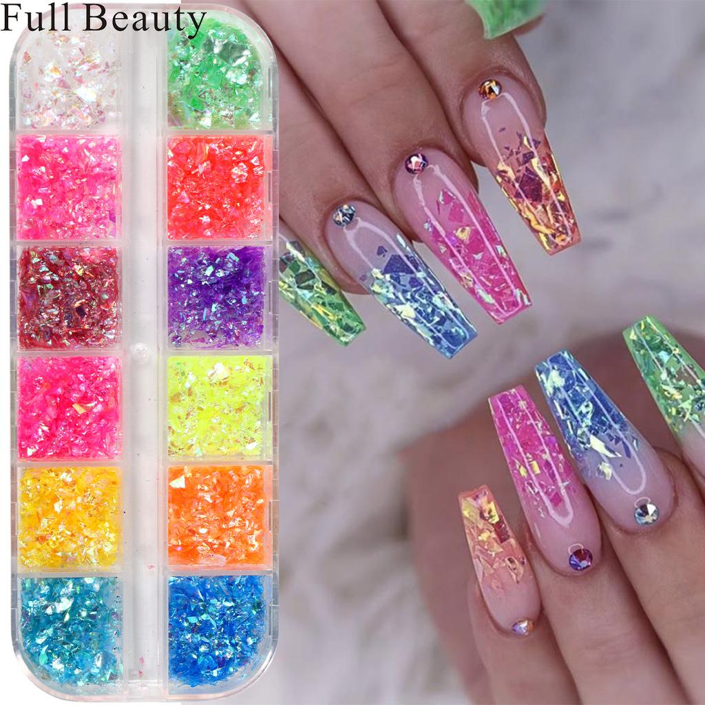 New Nail Glitter Ins Colorful Shell Paper 12 Grids Nail Glitter