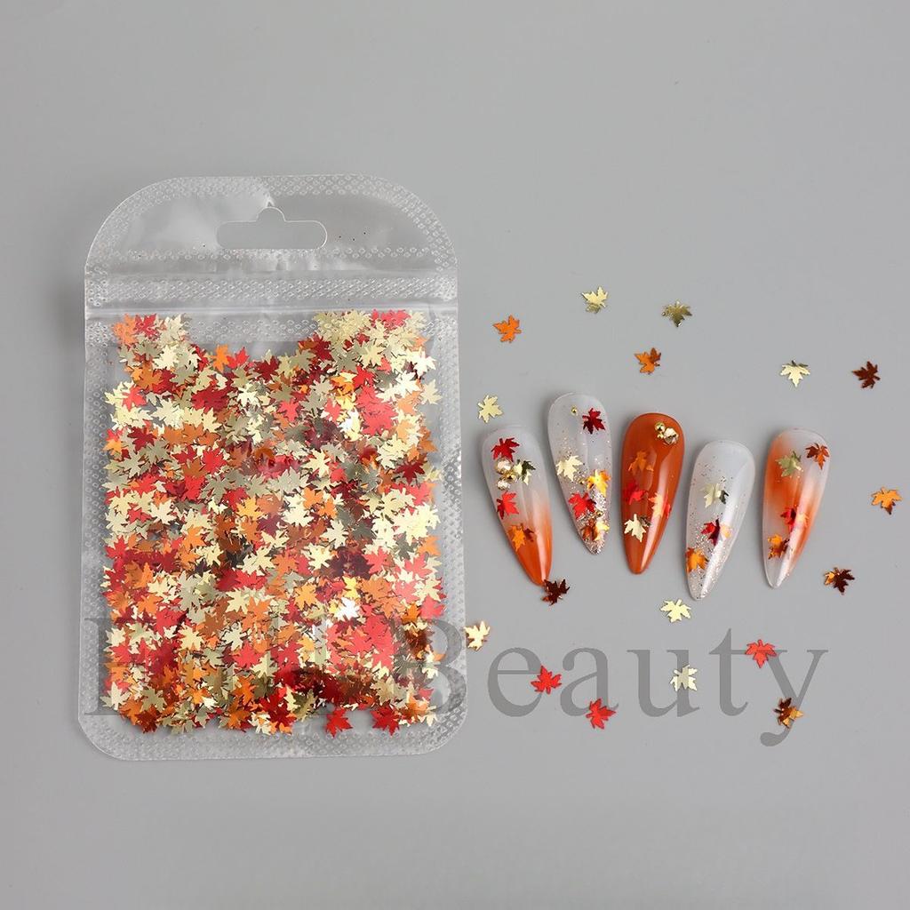 New Nail Art Bag Jewelry Autumn Maple Leaf Decoration Multi-Color Glitter Jewelry