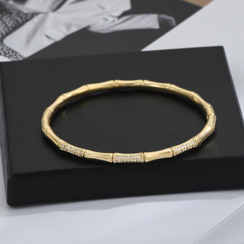 Elegant Gold-Plated Bamboo Joint Bracelet with Micro-inlaid Zirconia for Women
