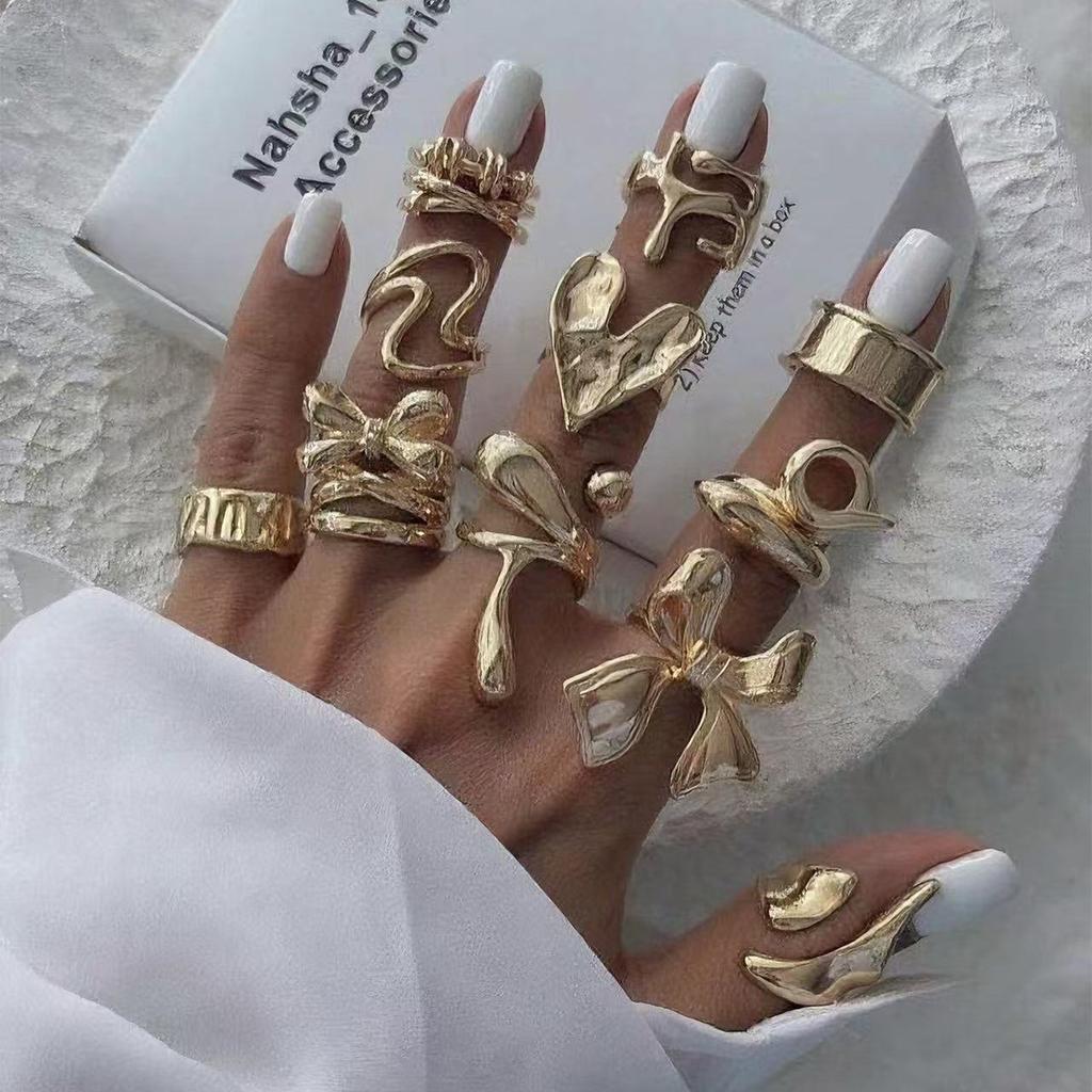 Glossy Ring Set European and American Jewelry Exaggerated Lava Lines Bow Love Alloy Ring Women