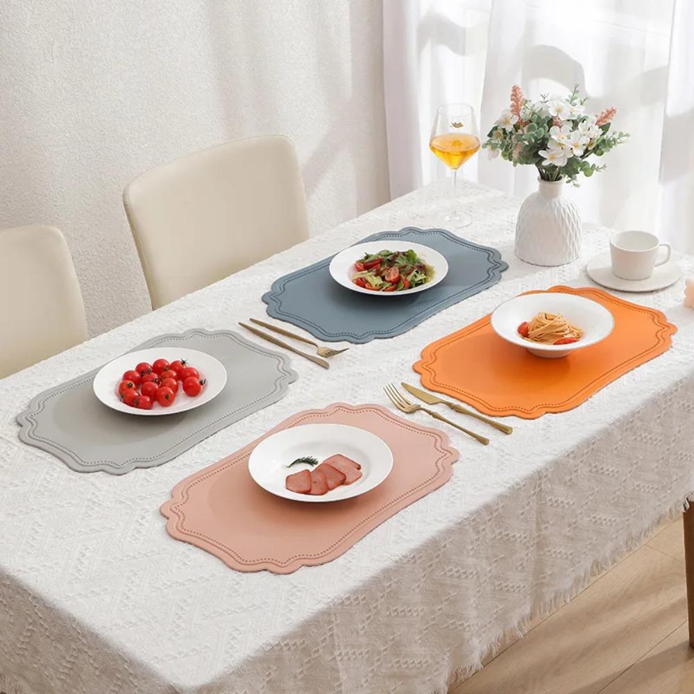 4 Piece PU Leather Table Mat Retro Place Mat Elegant Irregular Tableware Pad Party Table Decor