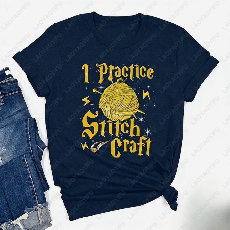 I Practice Stitch Craft Creative Trend Casual Style Oneck Printed Tops Funny Knitting Lover Unisex Adult Cotton Shirt Women Tee
