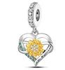 New 925 Silver Fashion Golden Sunflowers Heart Charm Beads Fit Pendant Original Bracelets Party Gift DIY Jewelry