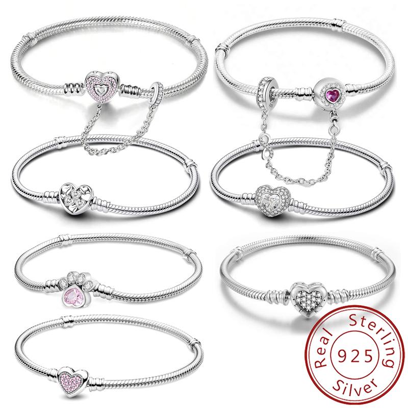 925 Silver Personalized Simple Love Heart Claw Bracelet DIY Bead Making Fit Original Pan Bracelets Fine Jewelry Gift