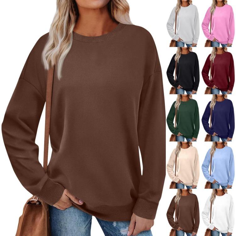 Women's Fashion Solid Color Round Neck Long Sleeve Loose Pullover Sweatshirt Top