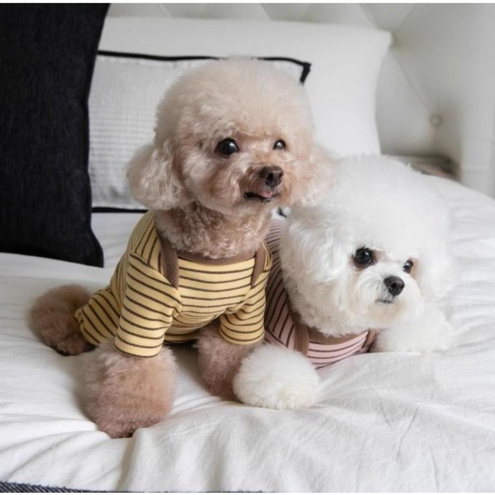Soft Four-Legged Dog Pajamas Long Sleeves Striped Dog Base Shirt Pet Casual Wear Belly Protection