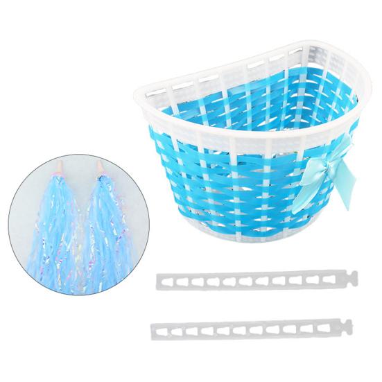 Available in a variety of vibrant colors, this basket adds a cute and practical touch, especially suitable for childrens bikes. Equipped with charming decorative streamers, this plastic woven basket seamlessly combines practicality with aesthetics, offering a stylish storage solution while adding a touch of fun and flair to any child's bicycle.