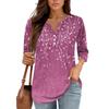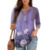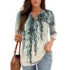 3/4 Length Sleeve Women's Tops Print Vintage Fashion Casual Loose With V Neck Plus Size Shirts Tops