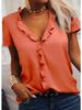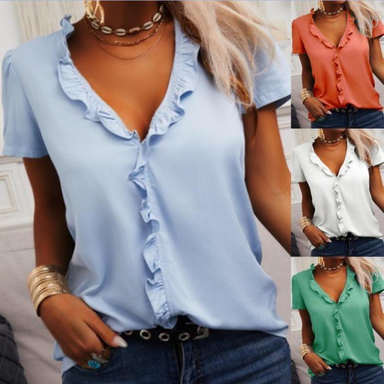 Spring Shirt Summer Short Sleeve Ruffled Top Women Solid Color