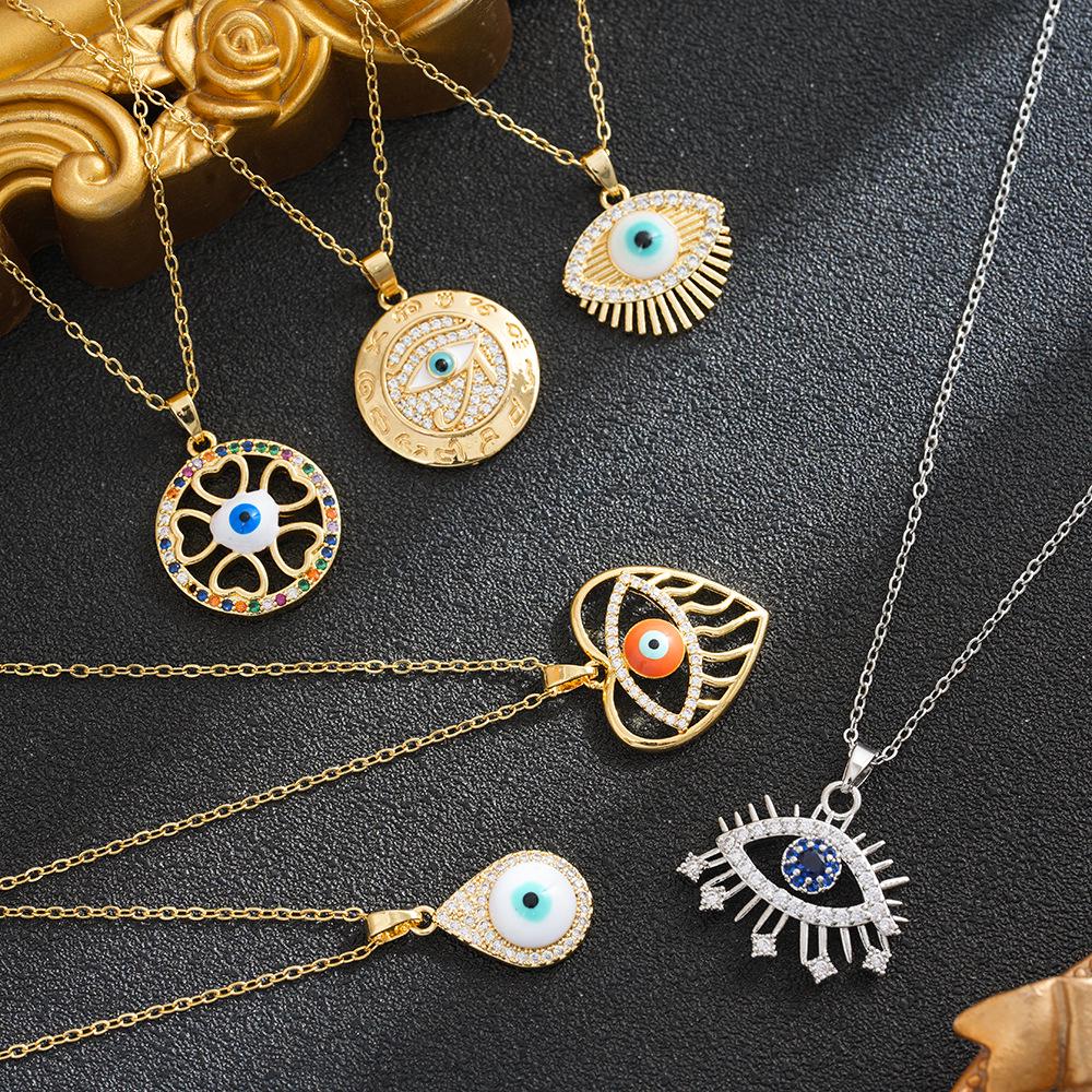 Electroplated Copper Necklace with Zirconia Demon Eye Pendant - Versatile Women's Fashion Jewelry.