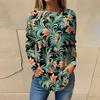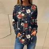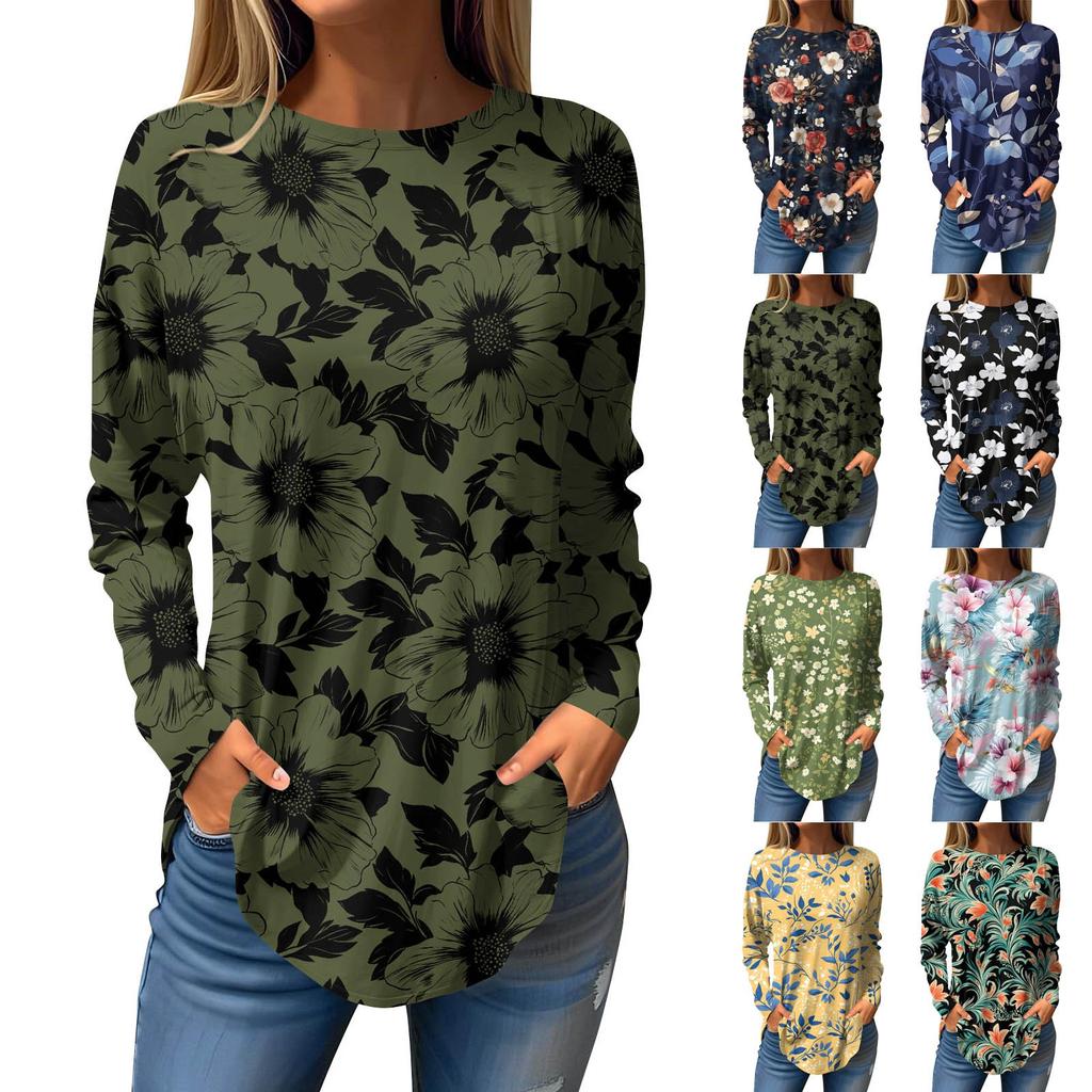 Women's Loose Casual Flower Printed Round Neck Long Sleeved T Shirt Top Pullover Long Sleeved Sweatshirt