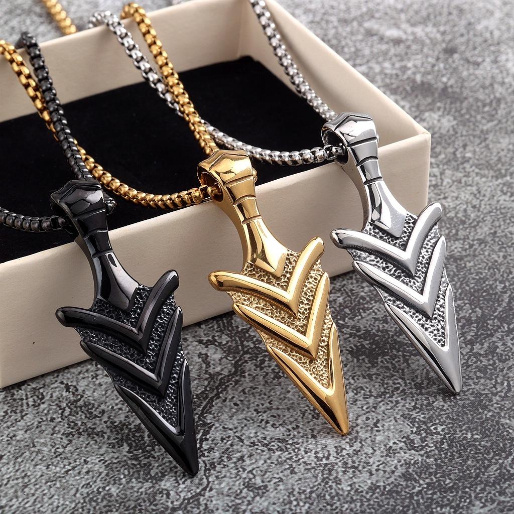 Vintage Stainless Steel Double Sided Arrow 3D Polished Pendant Necklace Unisex