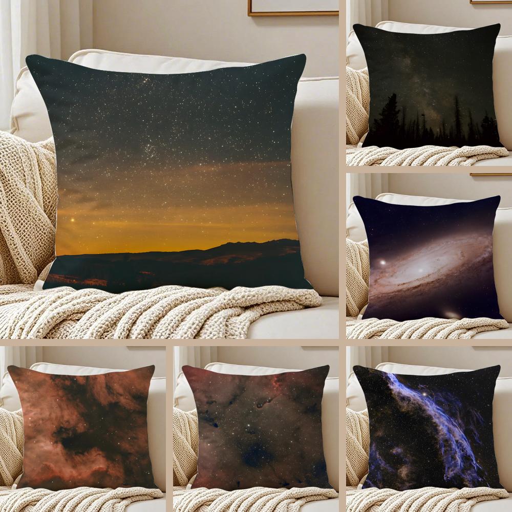Beautiful Night Stars Cushion Cover Pillowcase Antidustmite Invisible Zipper Short Plush Sofa Cushion
