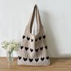 Knitted Love Pattern Tote Bag Stylish Woven Handbag Shoulder Bag for Women Party Work Travel Underarm Bag Outdoor